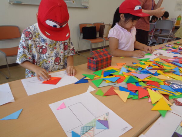 たくさんのビックリ箱や図形遊び、コマなどを用意てくださり、にぎやかに楽しんできました。