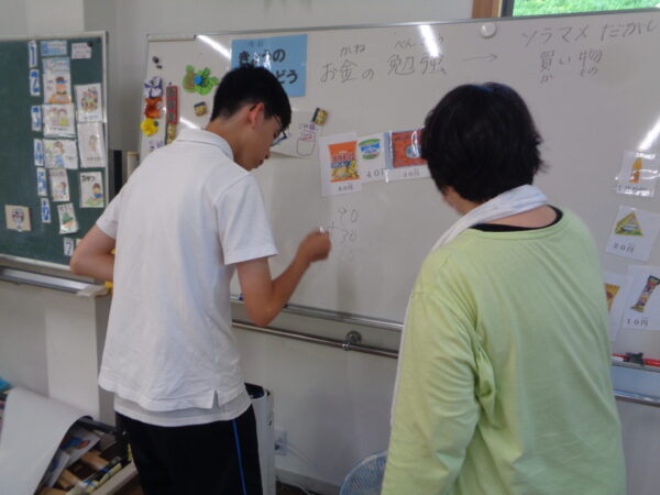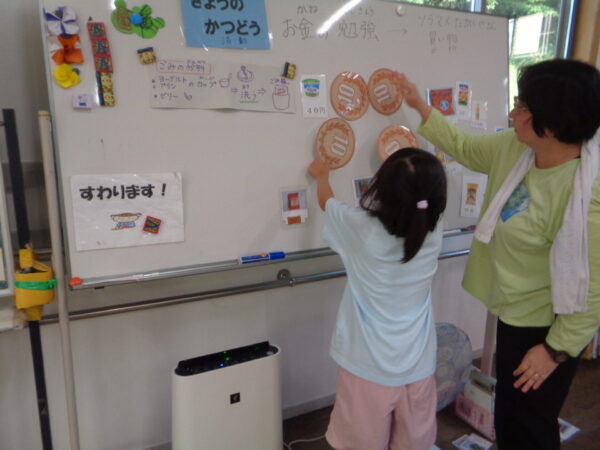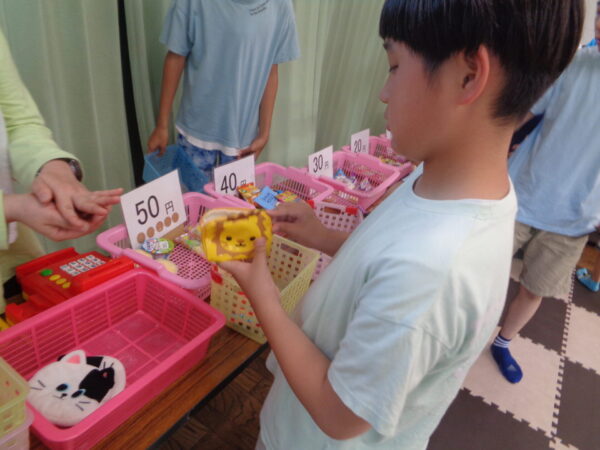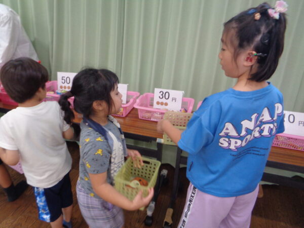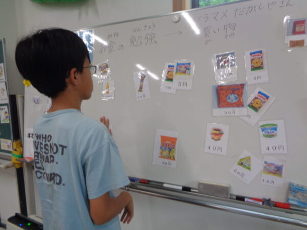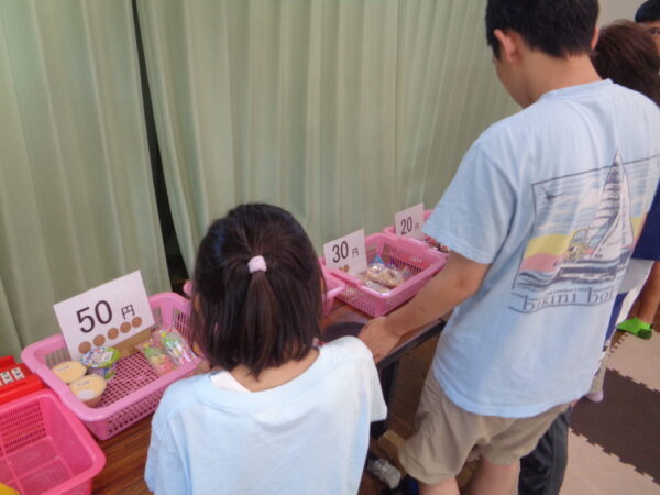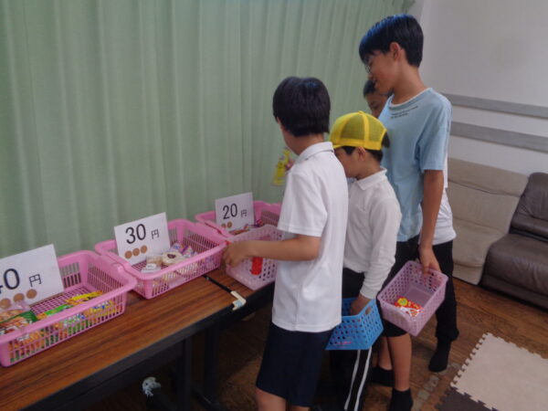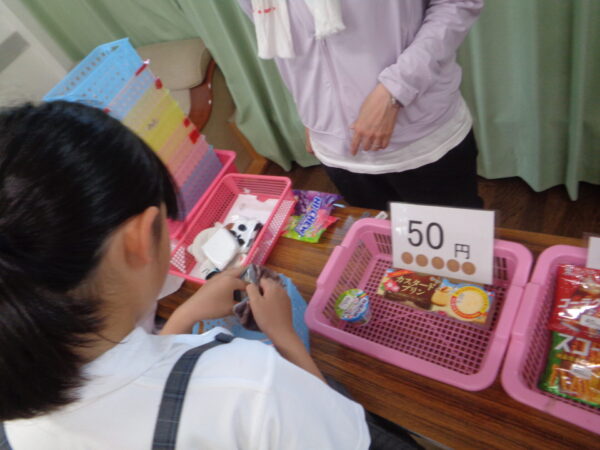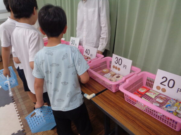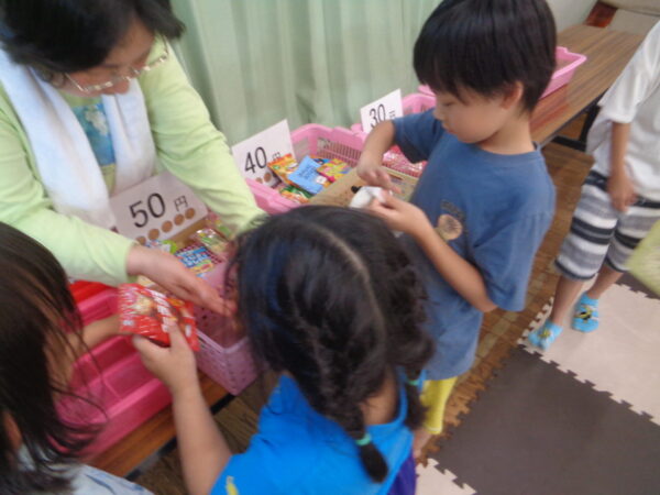 金種5円玉は1円が5枚と同じ、50円玉は10円が5枚と同じ。500円玉は100円が5枚と同じ。 少しずつでもいいので機会あるごとに意識して理解できていくといいな~ 食べたいお菓子を選ぶのはワイワイ楽しい時間で~す。