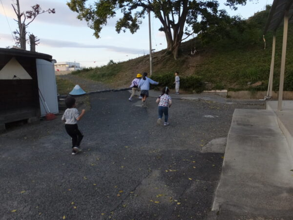 おにごっこ・かくれんぼ・だるまさんがころんだ、大きな声を出しながら走り回っています。
