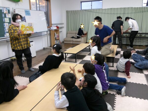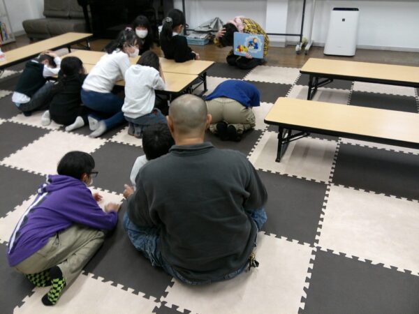 震災についての絵本や紙芝居などで起こった出来事を知り、