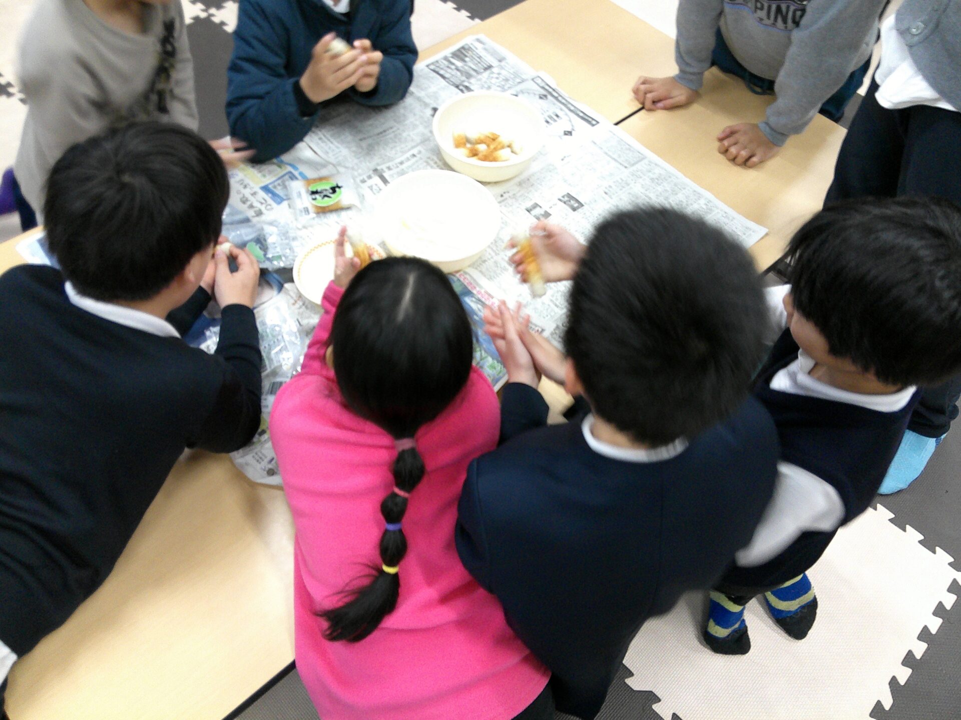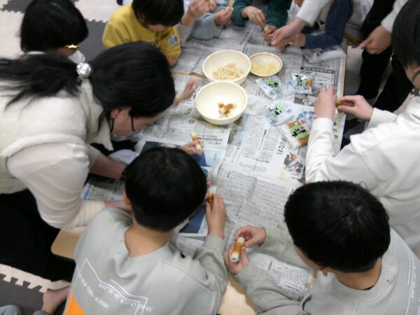 必要な備えについて考えました。そして、お餅を使ったクッキング。簡単に美味しくできました。