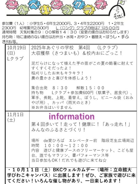10月19日(日)こんぺいとうクラブ参加者募集!!