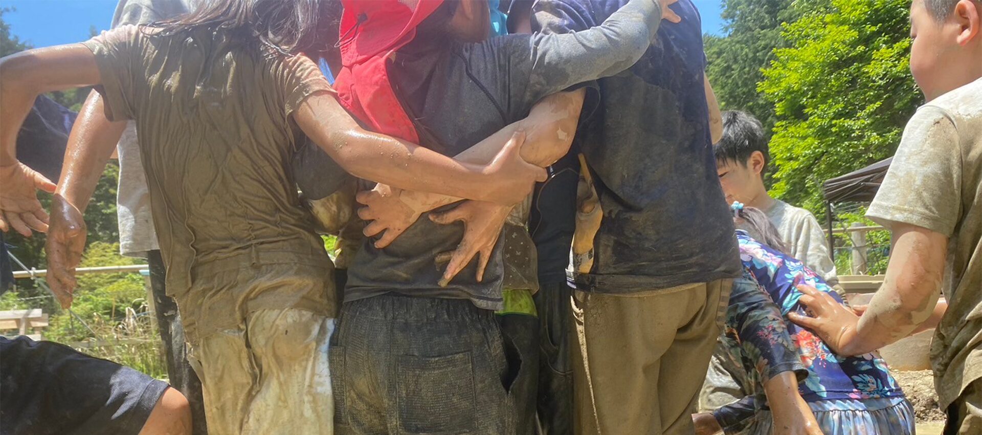 幼児から小学生までの異年齢集団で、土日に思いっきり自然の中で遊び込みます。